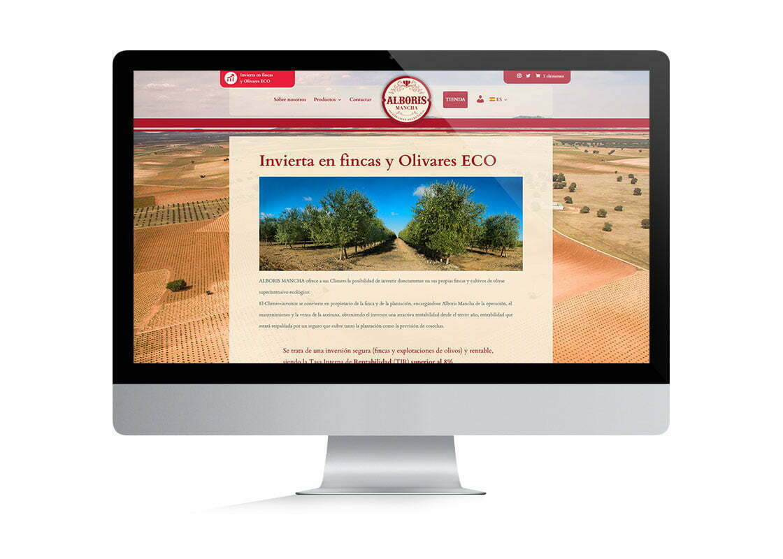 Se crea una sección adicional donde Alboris-Mancha ofrece a sus Clientes la posibilidad de invertir directamente en sus propias fincas y cultivos de olivar superintensivo ecológico.Tanto la página principal como la sección de inversores se apoyan con videos para detallar toda la información.