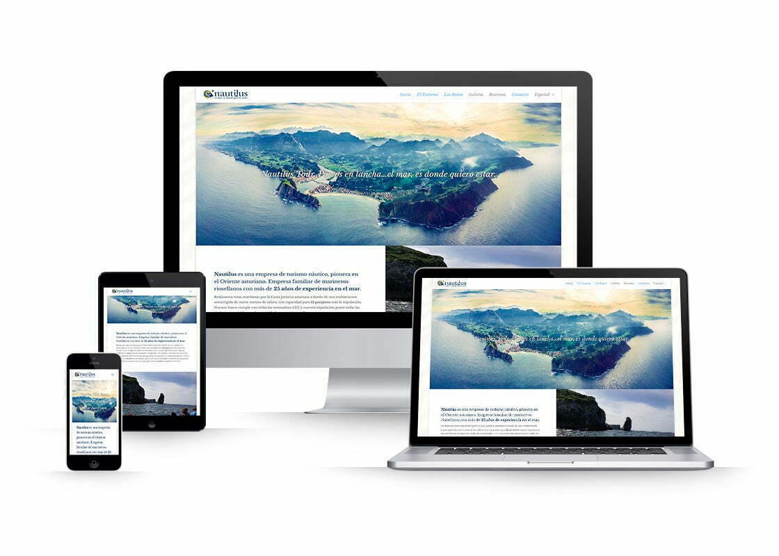 La empresa Nautilus Tour es una empresa de turismo naútico pionera en el oriente de Asturias. Para su creación en 2017, se desarrolló una web multilenguaje, en castellano, inglés y alemán, conectada con un motor de reservas externo.