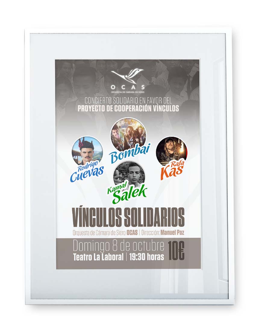 La Orquesta de Cámara de Siero (OCAS) comienza su actividad en el año 2002. Desde entonces desarrolla una intensa labor solidaria, colaborando con diferentes entidades y ONG’s de gran trayectoria como Cruz Roja, Fundación Sandra Ibarra, Agencia Asturiana de Cooperación o Medicus Mundi.